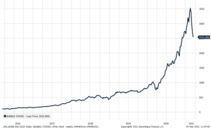 Index Nasdaq 100 se propadl o 10,9 %, což je 15. největší propad od 1. ledna 2003. Historie napovídá, že pokud to bude z hlediska profilu zotavení průměrný pokles, mohl by trvat 121 obchodních dnů. To se podle nás významně podepíše na psychologii investorů, protože noví drobní investoři, kteří se na akciových trzích objevili v loňském roce, zatím nemají zkušenost s dlouhodobějším poklesem a zpomalením akciových trhů. Proto razíme teorii, že růstové investování a jeho podpora v nejbližší době budou záviset na trvání tohoto propadu, a že tedy půjde o jeden z klíčových indikátorů, které je třeba do budoucna sledovat.