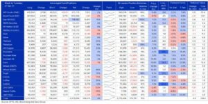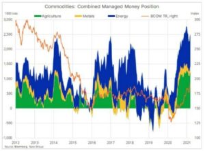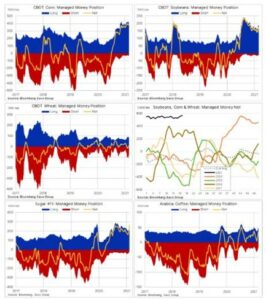Investiční fondy zvýšily sázky na vzestup komodit a u 24 nejvýznamnějších komoditních futures stouply celkové čisté dlouhé pozice o 4 % na 2,5 milionu lotů, což odpovídá nominální hodnotě 137 miliard dolarů. Zareagovaly tak na vzestup indexu Bloomberg Commodity Index zhruba o 3,6 % na nové desetileté maximum. Za tento vzestup může z velké části obilí, které posílilo o 8,6 %, a také měkké komodity, jež posílily o 7,3 %. Největší nárůst individuálních pozic byl zaznamenán u cukru, kávy, pšenice, topného oleje a mědi.